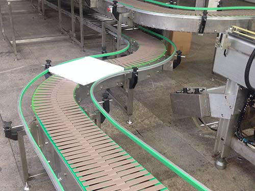 平頂鏈線的兩側(cè)加裝板式護攔或?qū)蚧?以達到輸送型態(tài)不規(guī)則的物品,在鏈板上可加裝專用夾具,并根據(jù)工藝要求可作為裝配生產(chǎn)線,或直接采用塑鋼平頂鏈或不銹鋼平頂鏈作為輸送,可實現(xiàn)彎道輸送. 可輸送各類玻璃瓶、PET瓶、易拉罐、紙盒裝飲料、袋裝食品等物料,也可輸送各類箱包。